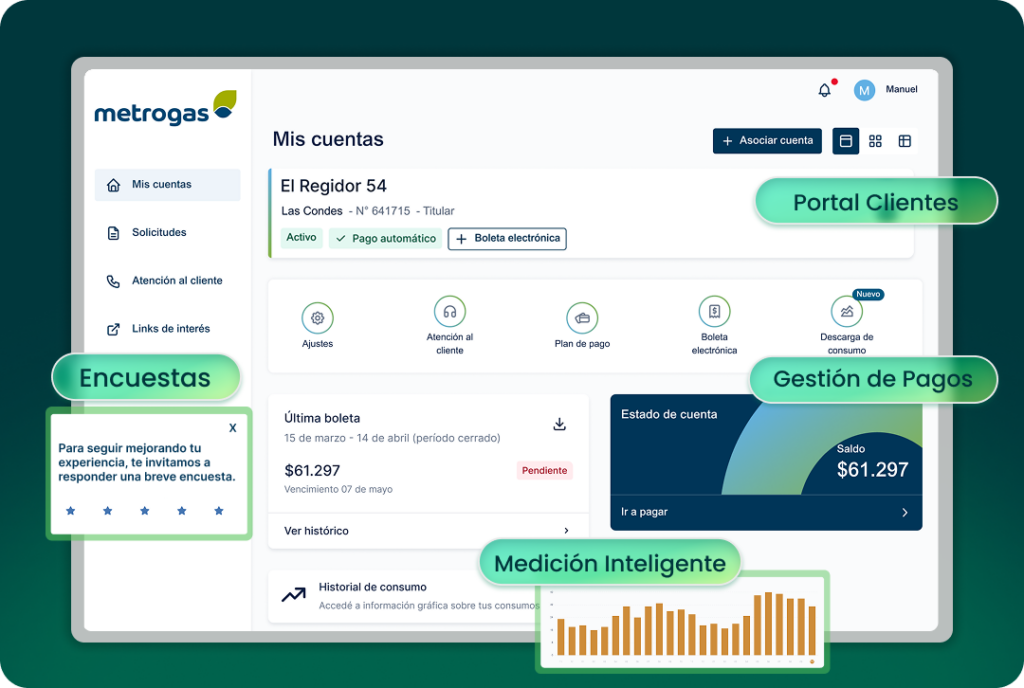 - Portal y App de clientes para trámites, reclamos, facturación y pagos