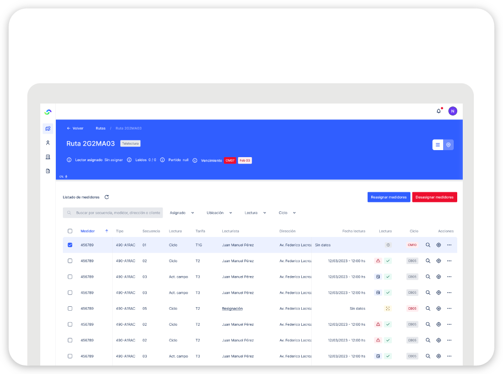 - Permite asignar, desasignar y reagrupar rutas de trabajo.